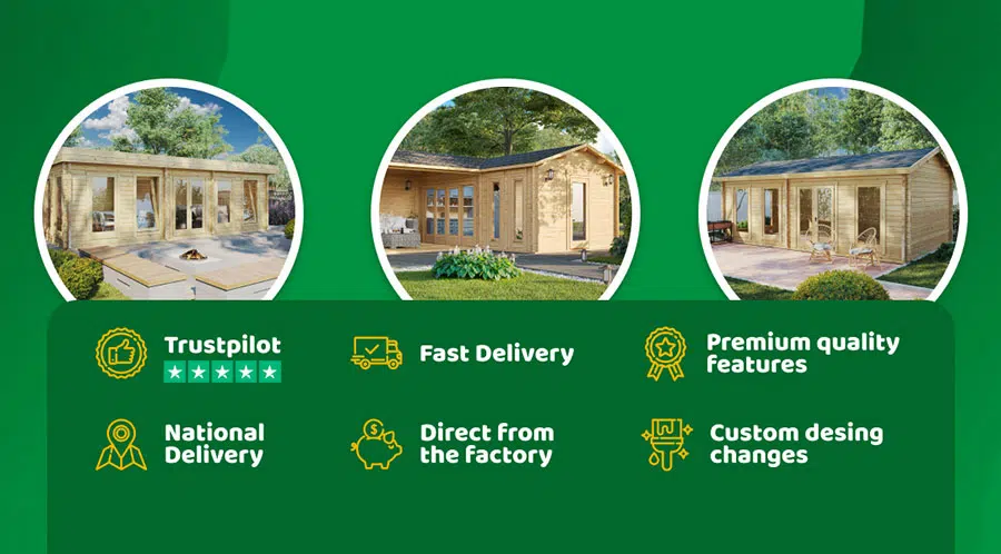 No matter if you are from: London, Birmingham, Leeds, Glasgow, Sheffield, Liverpool, Manchester or any other city, we serve whole England, Scotland, Wales and Ireland. Delivery of our flat pack log cabins is free to most areas of the UK.