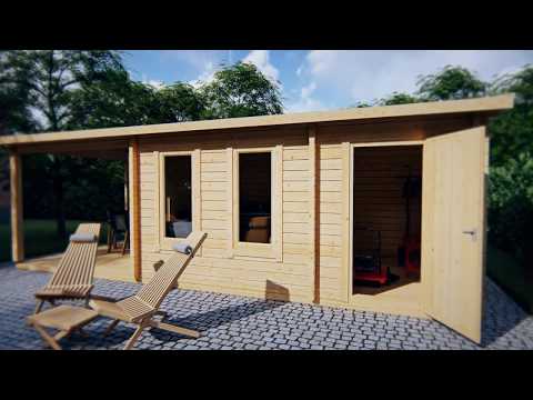Garden Summer House with Veranda & Shed Super Nora E 15m² | 8 x 3 m | 44 mm