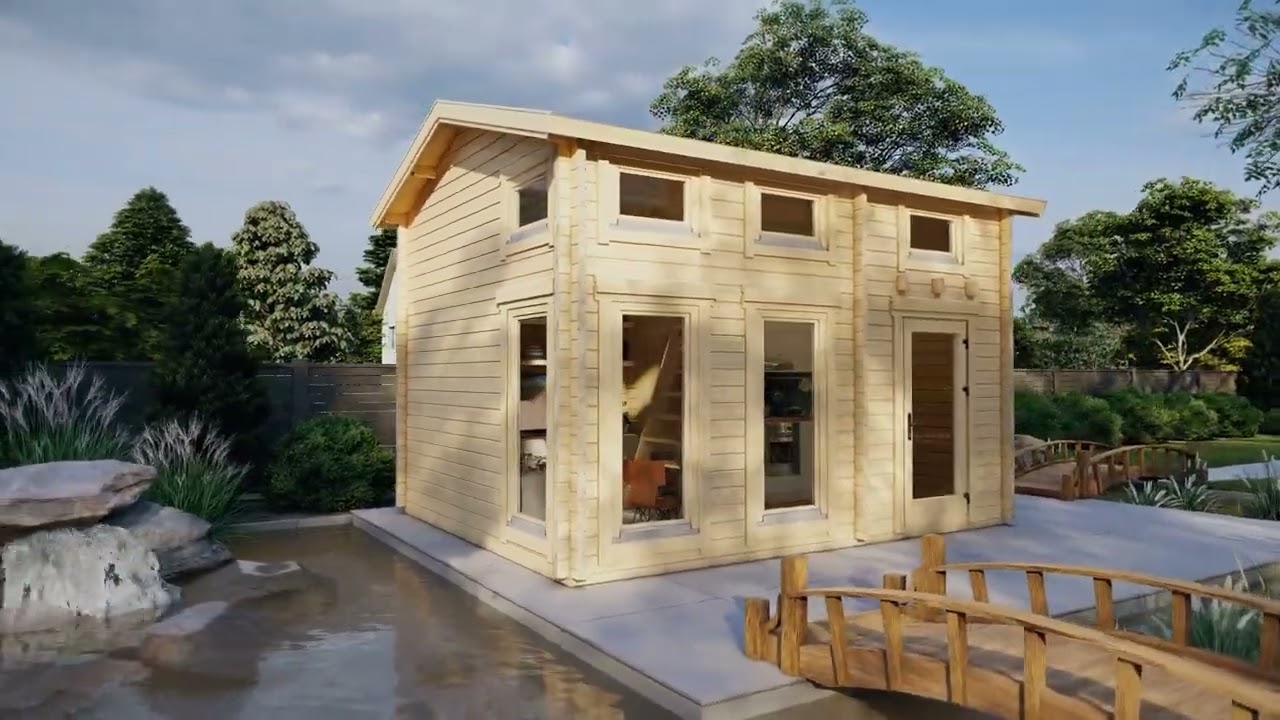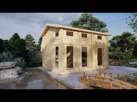 The Bruno 1 cabin is a compact version of our Sweden B model and can be built on a footprint of just 4 x 5m. The ground floor has 19m2 of floor space and includes a separate room that could be used for toilet or shower room facilities. A wooden stair ladder leads up to a spacious loft which is ideal for additional storage or potentially a sleeping loft. This high-quality 70mm log cabin makes an ideal home office, retreat for focussing on your hobby’s or could be used as additional guest accommodation in your garden subject to obtaining the relevant permissions.  In addition to the extra thick solid wood wall logs, the standard cabin kit also features double-glazed doors and windows to ensure good thermal resistance. For all year-round use, we recommend opting for our roof and floor insulation kit as this will keep the cabin cooler in the summer and help retain heat in colder months. It is easy to connect services such as electrical supply and drainage to our cabins. The Bruno 1 not only looks idyllic but creates an extension to your living space without having major building works and huge expense.