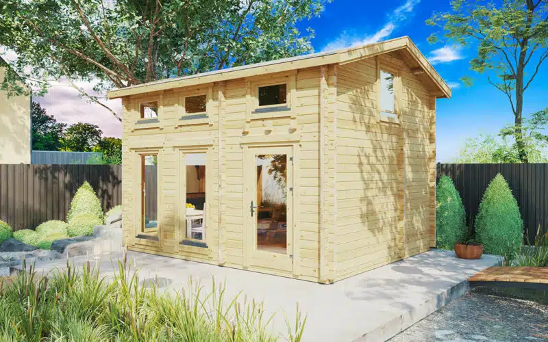 This high-quality 70mm log cabin makes an ideal home office, retreat for focussing on your hobby’s or could be used as additional guest accommodation in your garden subject to obtaining the relevant permissions.  In addition to the extra thick solid wood wall logs, the standard cabin kit also features double-glazed doors and windows to ensure good thermal resistance.