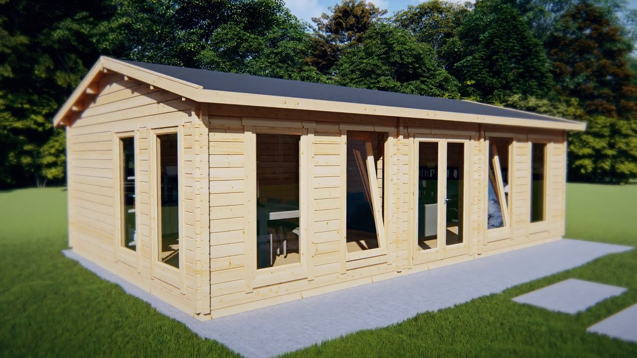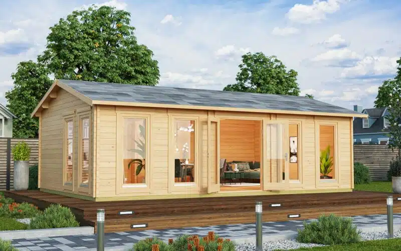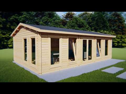Our 8m x 5m Large Garden Room D is one of our most popular cabins. Built with our extra thick 70mm wall logs, 28mm floorboards and fully double glazed (tempered glass) This large garden room will enhance any garden. With a huge internal area of 38m2 you’ll have plenty of space to create a games room, large office, or extra space for visiting friends and family. Additional roof and floor insulation let you use this cabin all year round. Metal storm braces and 94mm foundation planks are all standard features of this premium quality garden log cabin.