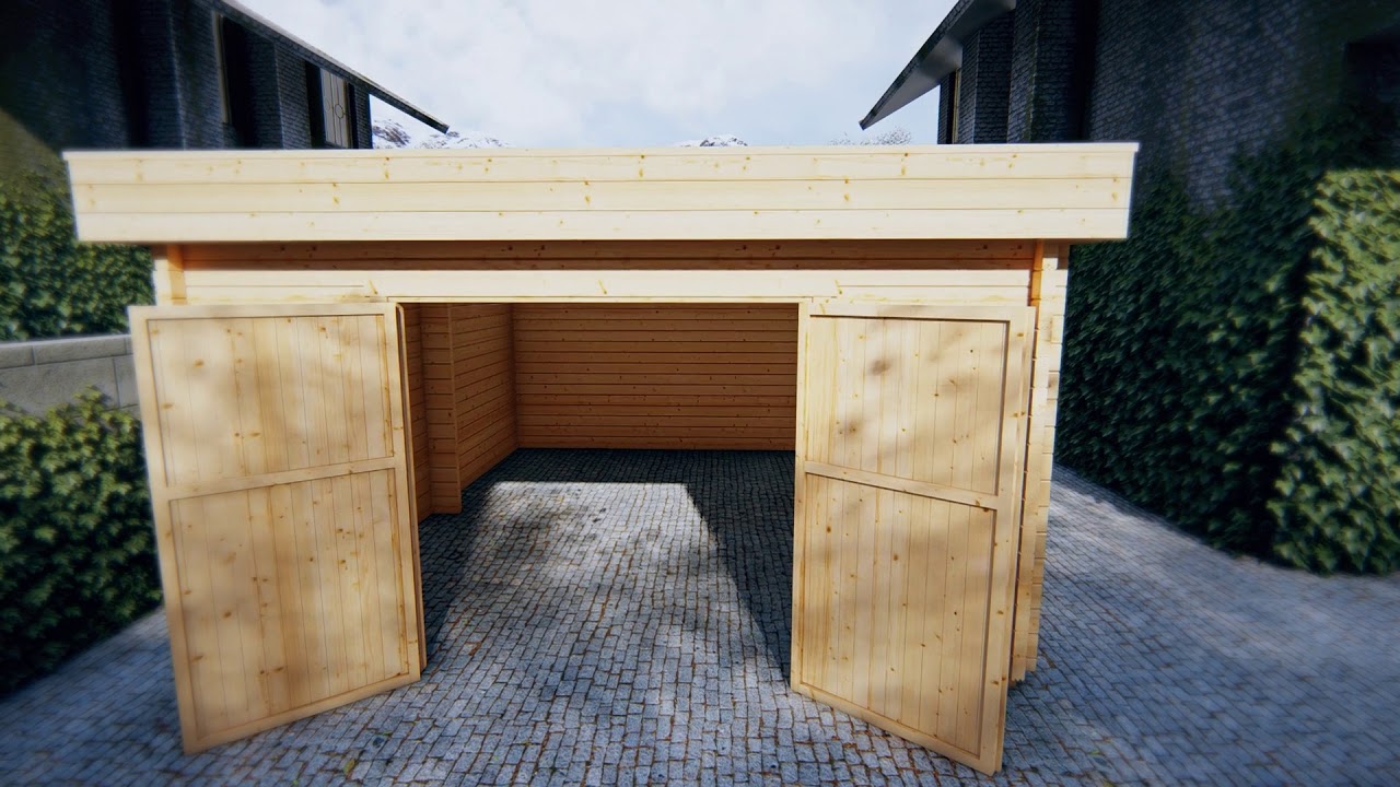 This modern looking garage is not only great looking, but could be a very handy and practical timber structure in your garden. Our large B and D type garages are safe havens for your vehicle and have over 15m2 of extra space at the sides for storage or for your DIY projects at the same time. 44mm walls, 4 metal brace rods in 4 corners inserted down through the entire wall and doubled glazed windows make it very weather resistant, stable and long lasting.