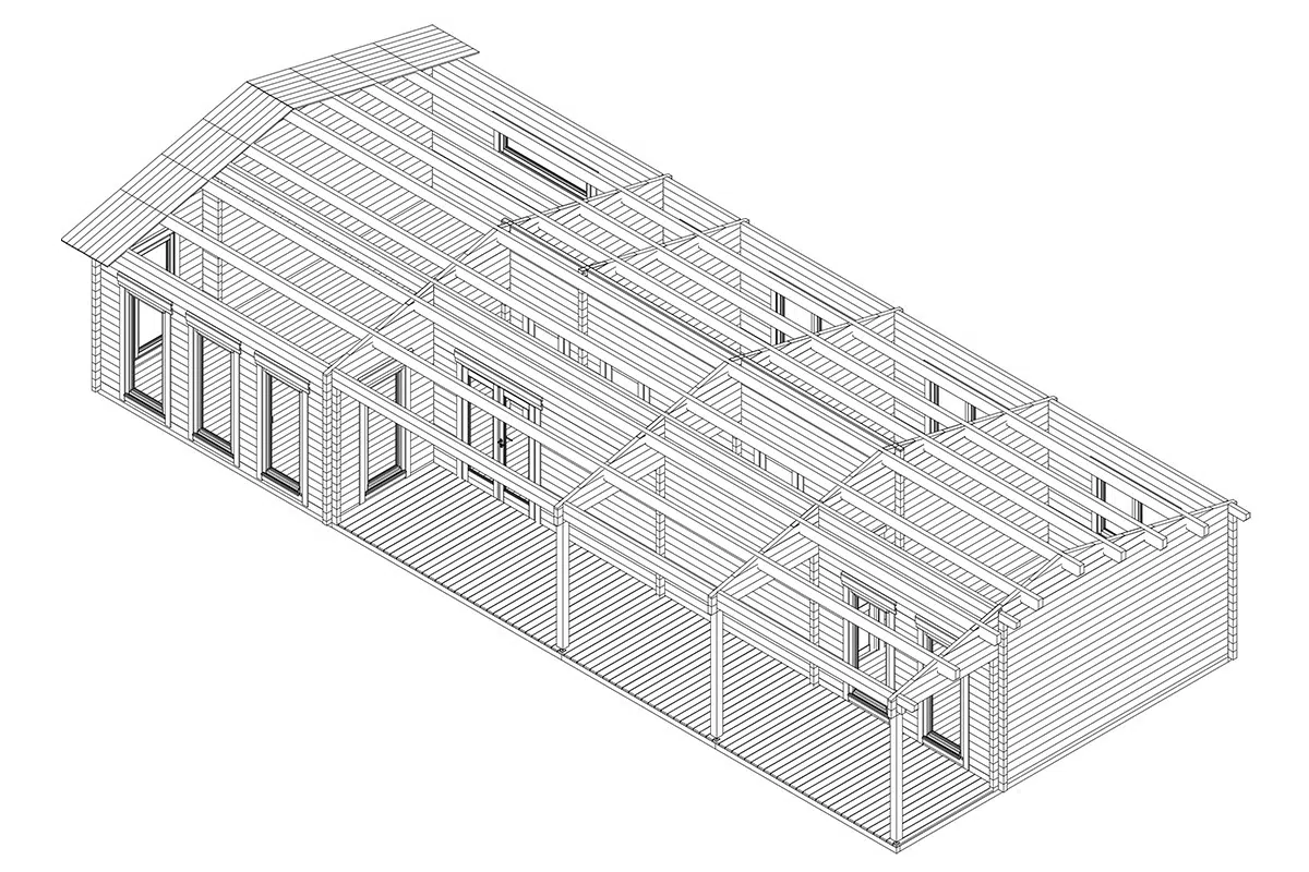 3 bedroom log cabin “Holiday C Max” 80m² | 70mm | 16 x 7 m