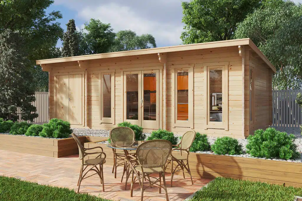 Summer House With Side Shed "Liam Plus" 22m² | 3 x 8 m | 44 mm