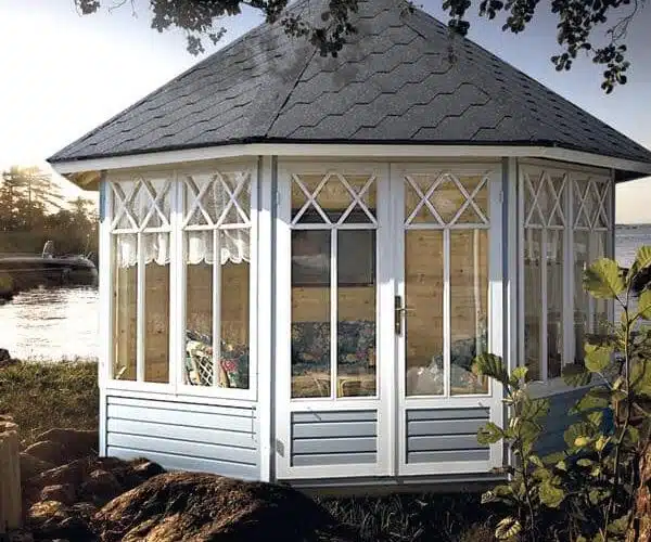 The Katrin Octagonal Summerhouse, is one of our most eye catching and elegant cabins. This cabin will enhance any garden, giving the perfect place to relax with family and friends. You can choose how many windows or solid walls you have at no extra cost, please just let us know your preferred layout on order.