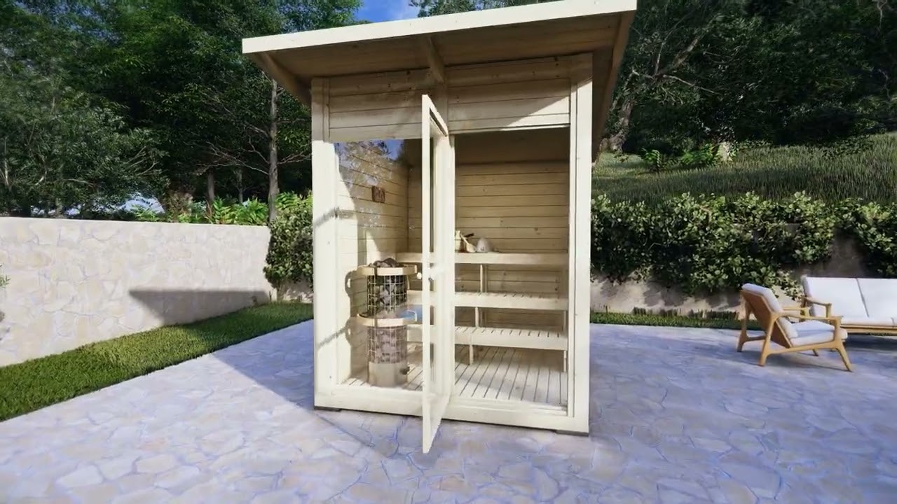 Additional info Treated foundation joists, wind braces, assembly kit, real glass in windows and doors, cylinder lock, product manual, 5 years guarantee. Self assembly garden sauna cabin.