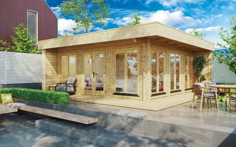 Introducing the “Roger,” a spacious summer house designed to elevate your outdoor living. With its contemporary design and expansive 25m² layout, this cabin offers ample space for relaxation and entertainment. Constructed with strong 70mm thick walls, the “Roger” ensures durability and sturdiness in all weather conditions.